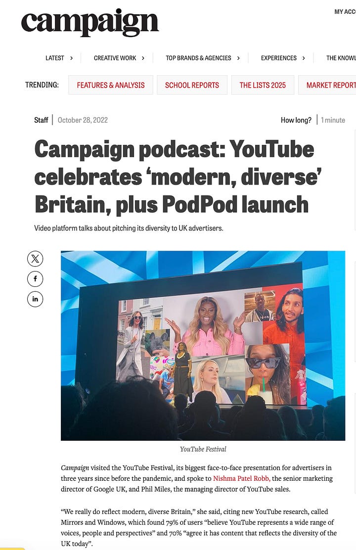My initial role was to build deep relationships with the industry, to land products like YouTube as a serious commercial entity, to help businesses understand what Google’s technology could do for them. And I knew, from twenty years of reading Campaign in libraries and pubs and on trains, how important the trade press was to scaling a message across an industry.